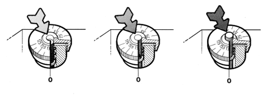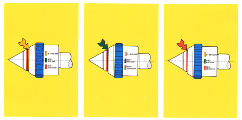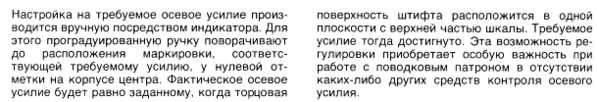 Имеется конструкция, позволяющая по цвету полоски у края корпуса центра приблизительно оценить усилие поджима центра