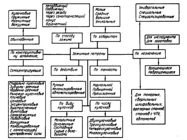Классификация зажимных устройств металлорежущих станков по /5/.