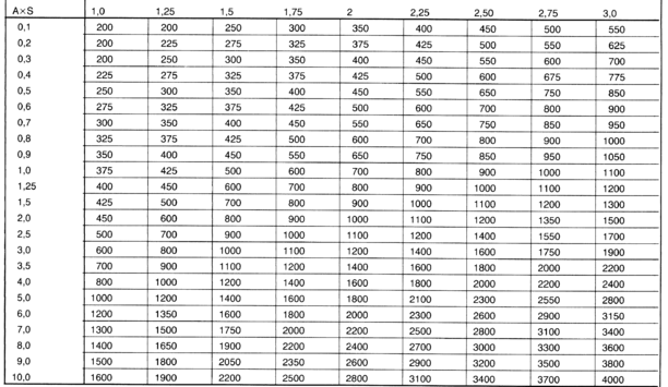 | Коэффициент | 1,5 | 1,4 | 1,2 | 1,0 | 0,9 | 0,8 | 0,7 |