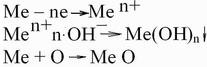 Как видно из реакций, ионизация металла протекает в присутствии иона гидроксила, которые каталитически ускоряют анодный процесс и образуют растворимые в воде соединения.