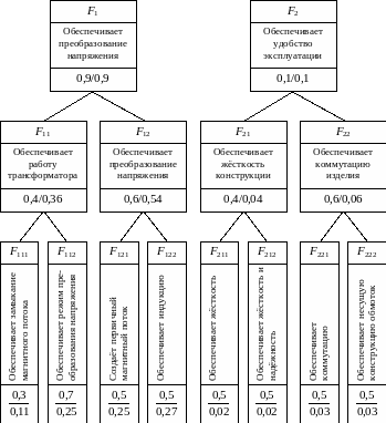 Оценка относительной важности функций ведётся последовательно по уровням ФМ (рис.3) или в табличной форме (табл.4).
