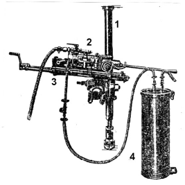 1 – Колонка, 2 – перфоратор с буром, 3 – винтовой ручной податчик,