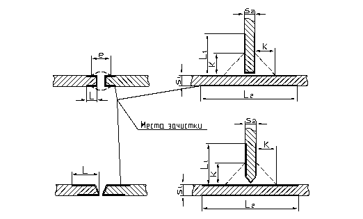 2.4.3 Для сварки набора (толщина 9-10мм) с наружной обшивкой в среде защитного газа назначаем катет шва К=5мм. Длины зачищаемых участков принимаем L1=10÷15мм, а L2=25÷30мм.