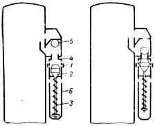 Для соединения проволоки с замком свободный ее конец пропускают последовательно через отверстие в верхнем конце корпуса, пружину, шайбу и наматывают на ролик два витка, а на стержень проволоки - 12 витков. Затем, вытаскивая проволоку из корпуса, помещают ролик у пружину с шайбой в корпус.