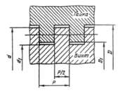 Прямоугольная резьба не стандартизована. При изображении прямоугольной резьбы рекомендуется вычерчивать местный разрез, на котором проставляют необходимые размеры.