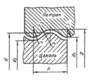 Метрическая коническая резьба обозначается в соответствии с ГОСТ 25229–82. В обозначение резьбы включаются буквы МК. Применяются соединения внутренней цилиндрической резьбы с резьбой наружной конической. Размеры элементов профиля конической и цилиндрической резьб принимаются по ГОСТ 9150–81. Соединение такого типа должно обеспечивать ввинчивание конической резьбы на глубину не менее 0,8l (где l – длина резьбы без сбега). Обозначение внутренней цилиндрической резьбы состоит из номинального диаметра, шага и номера стандарта (например: М20(1,5 ГОСТ 25229–82)).