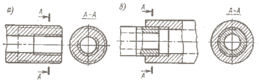 Внутренняя резьба (рис.3) – изображается сплошной основной линией по внутреннему диаметру и сплошной тонкой – по наружному. Если при изображении глухого отверстия, конец резьбы располагается близко к его дну, то допускается изображать резьбу до конца отверстия.