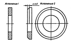Круглые шайбы по ГОСТ 11371—78 имеют два исполнения (рис. 4): исполнение 1 — без фаски, исполнение 2 — с фаской. Форму круглой шайбы вполне передает одно изображение на плоскости, параллельной оси шайбы.