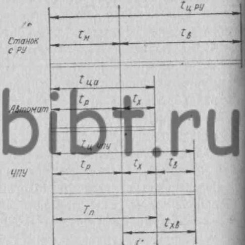 Рис.60. Цикл обработки при различной степени ее автоматизации