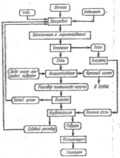 Разберем более подробно один из наиболее употребительных щелочных способов получения окиси алюминия - способ спекания. Примерная схема этого способа представлена на рисунке: