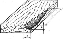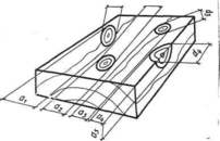 Заруб, запил, выхват, отщеп, скол, вырыв, задир, вмятину измеряют по глубине, ширине и длине (размеры соответственно h, b, l ).