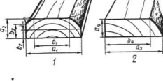 Закомелистость необрезной пилопродукции измеряют по разности ширин сортимента у комлевого торца и на расстоянии 1 м от этого торца.