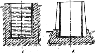 Рис.4. Стационарные бассейны для гидровзрывной штамповки: а - железобетонный; б - металлический