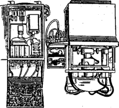 Одной из первых электрогидравлических установок является установка "Молния-3" (рис 9), которая имеет энергию в импульсе 7,5 кДж, рабочее напряжение 5 кВ и емкость конденсаторной батареи 600 мкФ. При помощи минимальных массогабаритных установок "Молнии-3" обрабатываются плоские заготовки размером 0,2x0,2 м, а также цилиндрические заготовки диаметром и высотой до 0,150 м. Кроме того, на этой установке можно выполнять запрессовку труб в трубных досках теплообменных аппаратов. Установка состоит из генератора импульсов тока и технологического узла.