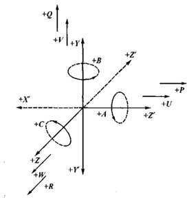 В качестве положительного направления оси Z принимают направление от заготовки к инструменту. Ось X – всегда горизонтальна. Дополнительные движения, параллельные осям X, Y, Z обозначают соответственно U, V, W (вторичные) и P, Q, R (третичные). Вращательные движения вокруг осей X, Y, Z обозначают соответственно буквами А, В, С. Положительные направления вращений А, В, С вокруг координатных осей X, Y и Z показаны на рисунке 1. Для вторичных угловых перемещений вокруг специальных осей используются буквы D и Е.