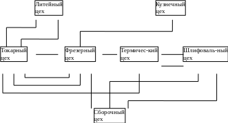 При использовании технологической формы специализации в заготовительных и обрабатывающих цехах складываются сложные, удлиненные маршруты движения предметов труда с неоднократным их возвращением в одни и те же цехи. Это нарушает принцип прямоточности, затрудняет согласование работы цехов и приводит к увеличению производственного цикла и, как следствие, к увеличению незавершенного производства.