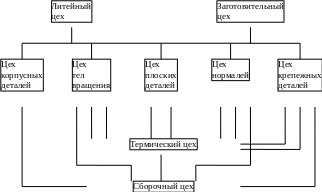 Под производственной структурой цеха понимается состав находящихся в нем производственных участков, вспомогательных и обслуживающих подразделений и связей между ними.
