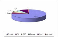 Основним торговим партнером підприємства є Росія, у структурі експорту на її частку припадає понад 70% всієї реалізованої продукції. У країнах СНД (без Росії) реалізується 7,5%, в Європі - 4,8%, в Азії - 8,1%, в Африці - менше 1%, в Республіці Білорусь реалізується близько 5% всієї продукції (рис.2).