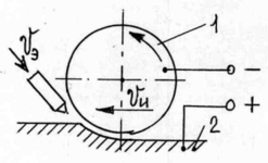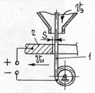 При такой схеме электрод-инструмент 1 имеет одно рабочее движение — поступательное движение со скоростью