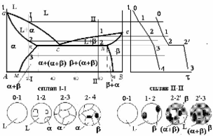 Рис. 4. Діаграма стану сплаву обмежений твердий розчин з евтектичним перетворенням.