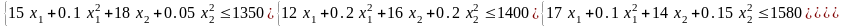 - объемы выпуска продукции 1 и 2 в тоннах. Тогда задача может быть описана в виде следующей модели нелинейного программирования