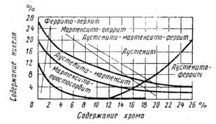 Рис. 1. Структурная диаграмма хромоникелевых сталей (по Мауеру и Шерреру)