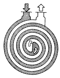 Рисунок 1 – Схема руху середовища в спіральному теплообмінному апараті