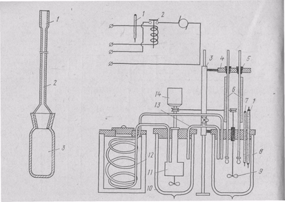 1 - розширена частина капілярної трубки; 2 - капілярна трубка; 3 - колба.