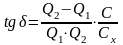 Тангенс кута діелектричних втрат можна розрахувати по добротності вимірювального ланцюга: