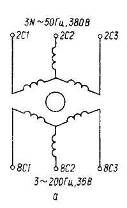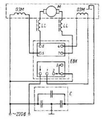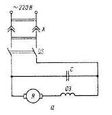 Схема вмикання машини включає штепсельне з"єднан-ня X, курковий двополюсний вимикач (35, фільтр-конденсатор С, обмотку якоря Я та обмотку збудження 03 (рис. 6, а).