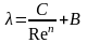 Наведені у літературі рівняння для розрахунку коефіцієнту опору, який враховує втрати на тертя та на місцеві опори, не дають можливості розрахувати л під час руху теплоносія крізь нерухомий шар. Тому, для досліджуваного шару матеріалу, приймаючи в загальному вигляді л = f (Re), значення коефіцієнта опору можна виразити у вигляді: