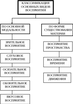 Классификацию основных видов восприятия можно выразить следующей схемой: