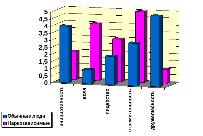 Сравнивая результаты исследования личностных характеристик в группах наркозависимых и обычных людей, с помощью методик МИФИ-КАРМА АДУЛТ и МИФИ-КАРМА МЕТАФОРЫ, так же не выявлено значительных различий. rs эмп.(-0,03)< rs крит.(0,94) и rs эмп.(0,32)< rs крит.(0,94). Этот факт говорит о частичном подтверждении поставленной гипотезы.