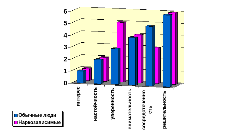 | Характеристики Функциональных механизмов | Среднее значение в выборке Обычных людей | Среднее значение в выборке наркозависимых | |