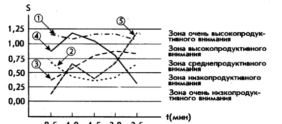 Кривая 5 – это график среднепродуктивного и крайне неустойчивого внимания.