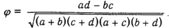 Полезно знать, что коэффициент хи-квадрат и коэффициент четырехпольной корреляции взаимосвязаны и, поскольку известна численность и распределение сопоставляемых выборок, указанные коэффициенты могут быть определены один через другой.