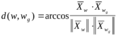 Если сравнивать угловые отклонения, то рассматривая вектора, составляющими которых являются признаки распознаваемого объекта w и класса wg, будем иметь: