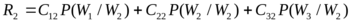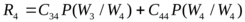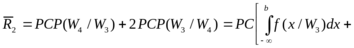 Средний риск для случая двух оставшихся классов W3 и W4 обозначим индексом "2" и также, как для первого случая, после простых преобразований получим