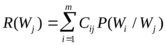 то среднее значение платы за ошибочную классификацию всех m объектов в системе распознавания определяется как условное МОЖ потерь (зависимость от Wj