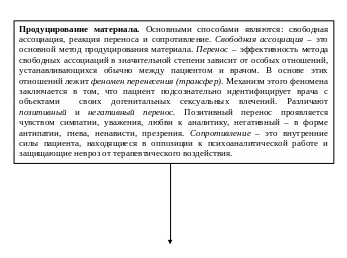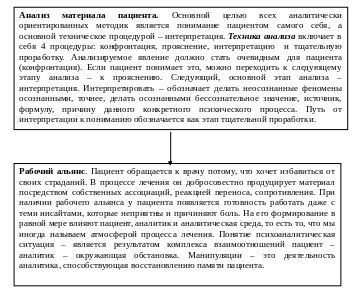 Классический психоанализ включает следующие основные этапы: продуцирование материала, его анализ и рабочий альянс.