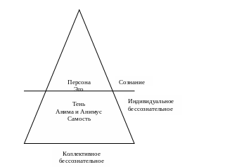 Персона (личность) – самый верхний слой личностного сознательного; Эго – его более глубокий сон. Ниже идет бессознательное, сначала индивидуальное, потом коллективное. Самый верхний слой бессознательного – двойник Я, его тень; следующий слой – душа (Анима и Анимус); самый нижний слой – объективное Я (самость).