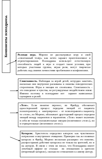 Психодрама – это одна из форм группового процесса, в котором метод драматической импровизации используется как способ изучения внутреннего мира участников группы. Она относится к одному из ранних методов групповой психотерапии. Создателем психодрамы, как и групповой психотерапии вообще, считает Морено.