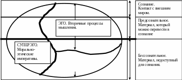 Это соединение теории с терапией и оценкой личности связывает все представления о поведении человека, но за этим лежит небольшое число исходных концепций и принципов. Рассмотрим сначала взгляды Фрейда на организацию психики, на так называемую «топографическую модель».