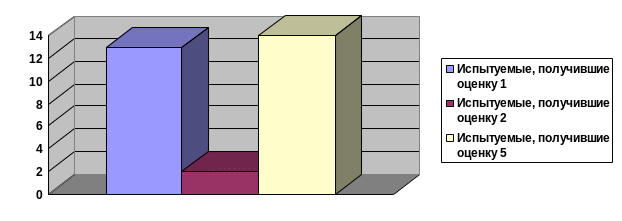 По диаграмме 1 можно сделать вывод, что испытуемых, получивших оценку 5, в классе 14 человек. Они обладают очень высоким уровнем проявления коммуникативных склонностей.