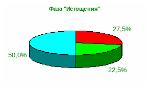 Наименее выраженным оказался симптом “эмоциональной отстраненности”. Он сложился у 17,5% педагогов, все они относятся к первой группе. Но складывается этот симптом у 30% педагогов, из них: 17,5 относятся к первой группе, 10% ко второй и 2,5% к третьей группе. Педагоги, пораженные этим симптомом, почти полностью исключают эмоции из профессиональной деятельности. Их почти не волнуют, не вызывают эмоционального отклика – ни позитивные обстоятельства, ни негативные. В целом фаза “истощения” сформировалась у 27,5% педагогов, в стадии формирования у 22,5% и не сформировалась у 50% педагогов.