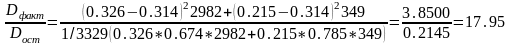что значительно выше табличного при 5%-ном уровне значимости: F0.05<3.85