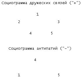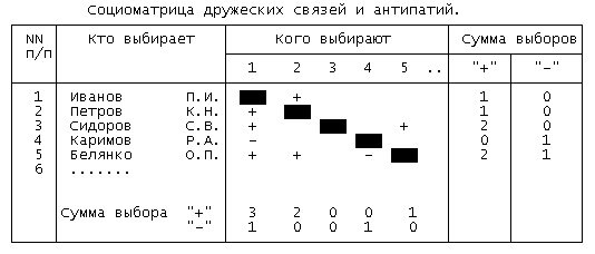 Социоматрица дружеских связей и антипатий.