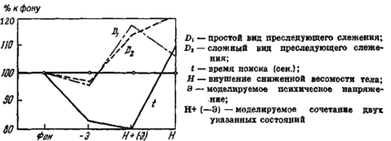Данные описанной серии исследований говорят лишь об изменении точности конечных результатов слежения при экспериментальном моделировании различных психических состояний. Специфика решаемых оператором задач и моделирующих устройств не давала возможности проанализировать другие параметры деятельности.