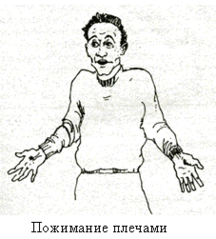 ест «пожимание плечами» является хорошим примером универсального жеста, который обозначает, что человек не знает или не понимает, о чем речь. Это комплексный жест, состоящий из трех основных компонентов: развернутые ладони, приподнятые плечи и поднятые брови.