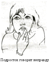 Когда подросток будет говорить неправду, он тоже поднесет руку ко рту, как и пятилетний малыш, но вместо того, чтобы демонстративно зажать рот ладонями, подросток будет слегка потирать губы пальцами.